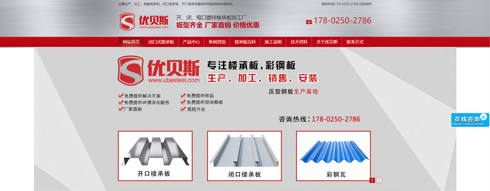 無錫優貝斯鋼品有限公司主要生產:樓承板, 鋼承板, 壓型鋼板, 彩鋼板, 閉口樓承板, 開口樓承板, 縮口樓承板價格優惠及相關的鋼結構輔材。